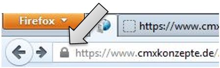 Achten Sie im Browser immer auf das Schloss links oben neben der Adressleiste. Das Schloss zeigt Ihnen an, dass die Verbindung verschlüsselt ist und die Daten verschlüsselt übertragen werden.