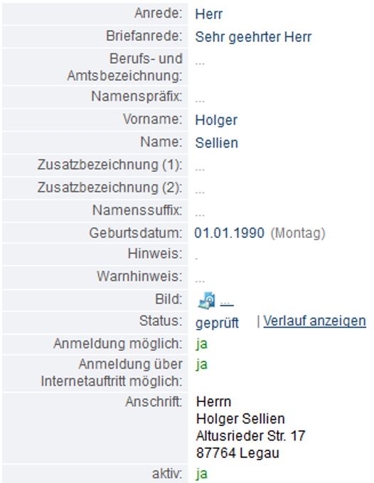 Wird das Geburtsdatum im Kontakt geändert, werden werden die Teilnehmerzahlen der Veranstaltungen in Durchführung, in denen dieser Kontakt Teilnehmer ist, neu berechnet.