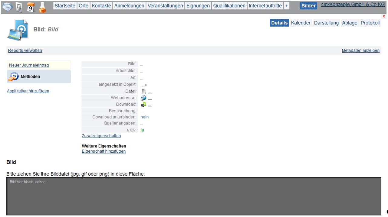 | aktiv | Über "ja"/"nein" wird gesteuert, ob das Bild auf der Website zu sehen ist oder nicht. | Anzeige | Internet |