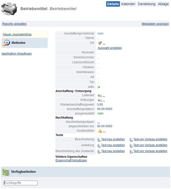 Die Betriebsmittel werden vornehmlich über zwei Reports verwaltet: