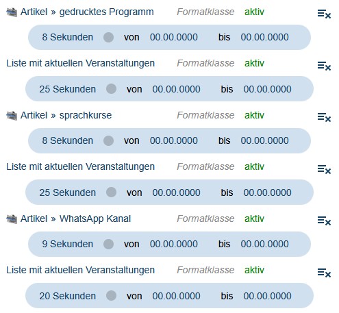 - Die Dauer der Anzeige in Sekunden definiert, wann auf den nächsten Inhalt gewechselt wird.