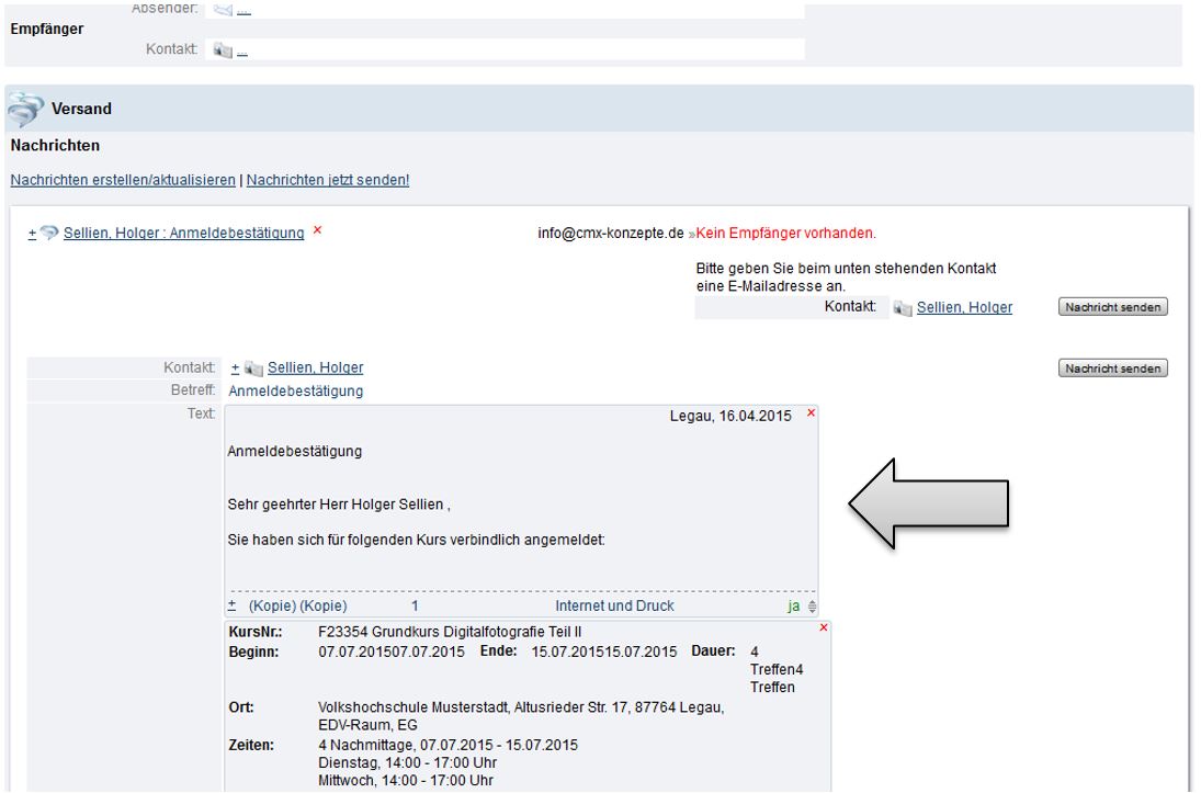 Nachdem die einzelnen Nachrichten bearbeitet wurden, werden alle Nachrichten mit dem Link „Nachrichten jetzt senden!“ verschickt.