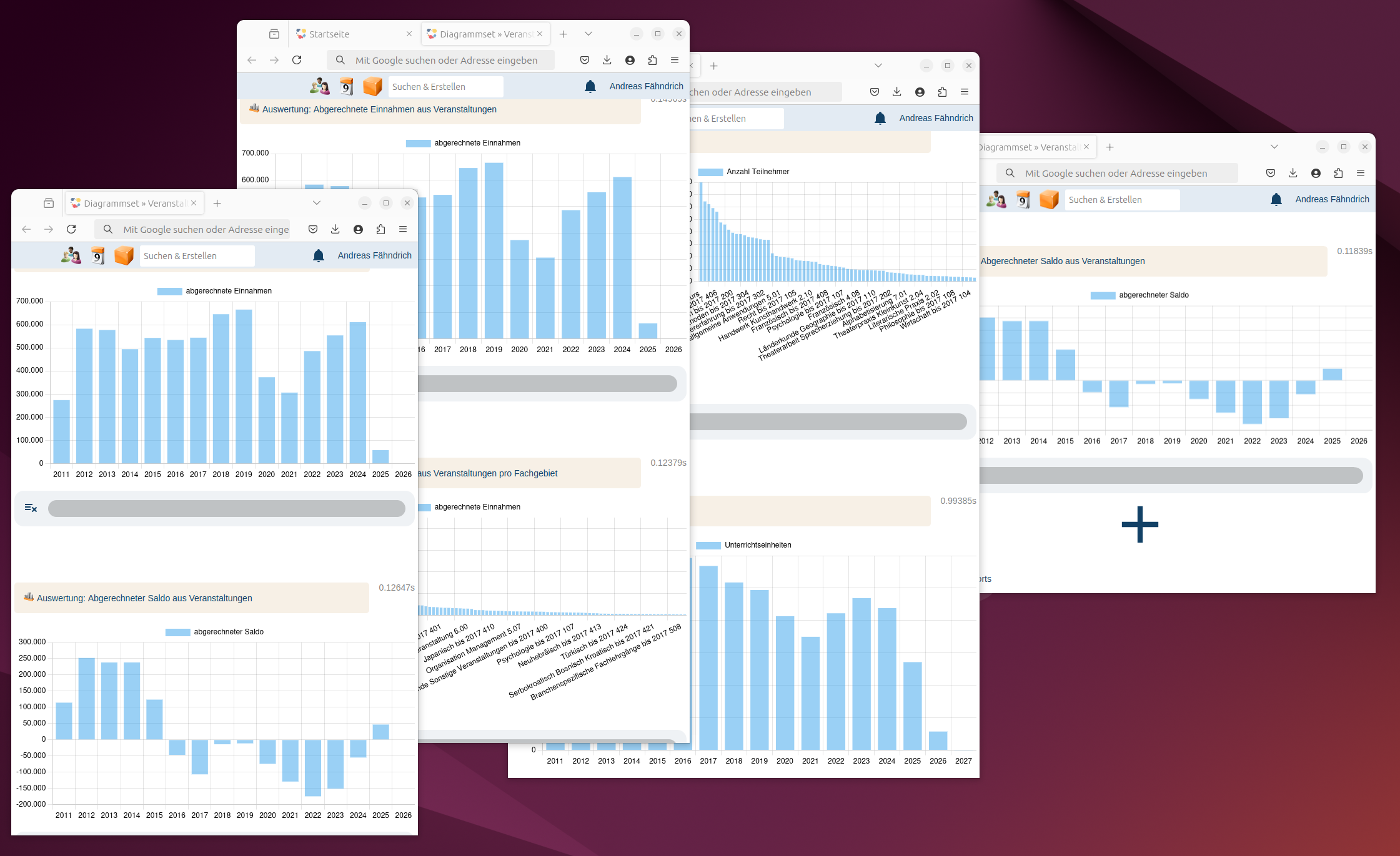 In diesem Diagrammset erfahren Sie wie die Fachgebiete finanziell aussehen. Womit machen wir ein Plus? Wo müssen wir aufpassen? Was rentiert sich? Wie entwickeln sich die Fachgebiete?